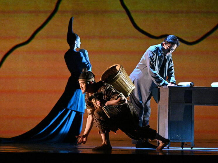 Легендарный пейзаж в данном случае не метафора, а тысячелетний свиток «Панорама рек и гор» мастера Ван Симэня, жившего во времена династии Сун (960-1279 гг.), и чудом сохранившийся: ведь твёрдые минеральные пигменты, использованные при создании сине-зелёного пейзажа обычно не долговечны. 1000-летний свиток, который в Китае рассматривают как 1000 смыслов, на огромной сцене танцевали 60 артистов из Центра Восточных искусств. Для этого технически сложную сценическую конструкцию вместе собирали 20 китайских и более 50 российских специалистов.