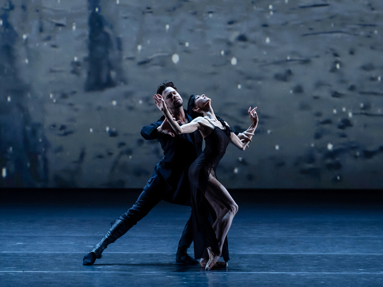Классики вообще на этом концерте показывали не слишком много, и другим счастливым исключением тут стала пара из Новосибирского театра оперы и балета: обладательница удлиненных певучих линий, номинант на Бенуа -2025 Виктория Данковцева и ее высокий красавец партнер Артем Пугачев, прекрасно станцевавшие «черное» па-де-де из балета «Лебединое озеро» Чайковского в классической хореографии Мариуса Петипа.