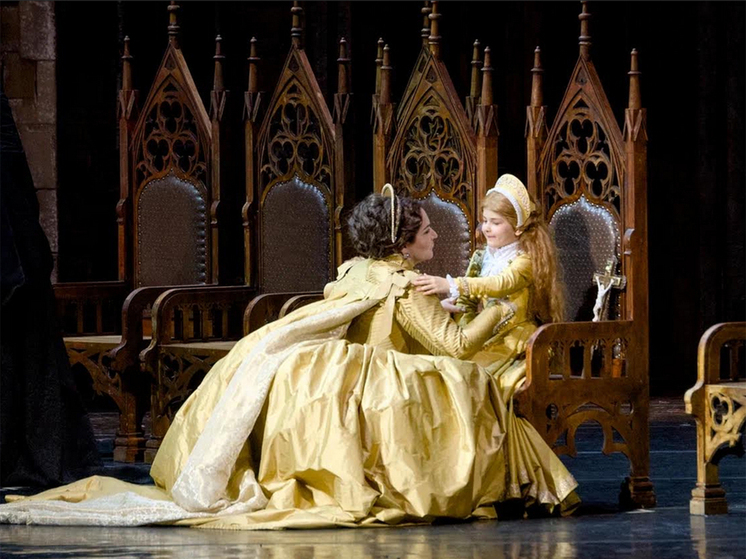 Знаменитый Генрих VIII, прославившийся количеством официальных жен, опередил даже нашего Ивана Грозного. У Генриха их было шесть, двух их из них он отправил на плаху. Среди этих несчастных – как раз-таки вторая, Анна Болейн. Либретто Феличе Романи рассказывает о последних днях Анны, когда у Генриха уже появляется новая пассия Джейн Сеймур. Генрих разрабатывает план жесткой подставы для опостылевшей жены, чтобы возвести на трон новую. Вот именно так радикально – не предаваться утехам с фавориткой при живой жене, а вот непременно, чтобы жену казнить, а на новой жениться. Но и Анна тоже не такая уж безвинная жертва. Была у нее любовь до короля, которую она предала из амбициозного желания воссесть на трон. А еще крутится вокруг влюбленный паж. Да и первый любовник возвращается из ссылки, не подозревая, что он – пешка в коварной игре Генриха. В финале, конечно, все погибают. А впавшая было в безумие Анна (Доницетти, которого в конце его собственной жизни тоже ждало психическое расстройство, любил и умел писать сцены сумасшествия), гордо восходит на эшафот в красном платье с длинным кровавым шлейфом. Падает ярко-алый занавес, и мы видим коронованную дочку Анны – Елизавету (прелестная малышка Валерия Новикова), ту самую, которой было суждено завершить своим правлением династию Тюдоров и отправить на эшафот Марию Стюарт. О чем, кстати, Доницетти пять лет спустя тоже написал соответствующую оперу.
