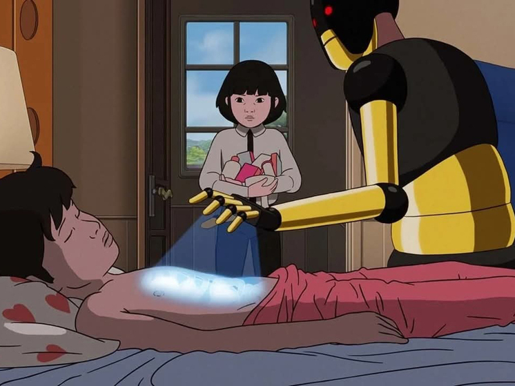 Айрис и сама живет в удивительном для нас мире, где ключевые позиции занимают роботы, похожие на скелеты. Пока мама с папой, напоминающие облако, которое невозможно потрогать, живут где-то далеко, погруженные в свои взрослые проблемы, девочка вместе с маленьким братом находится на попечении робота. И в школе преподают роботы. Там они и ночуют. С ними связан забавный эпизод и диалоги в сцене побега Арко и Айрис. Картина механизированного мира устрашающая, но и наше бытие, наверняка, показалось бы пугающим людям эпохи Средневековья и Возрождения.