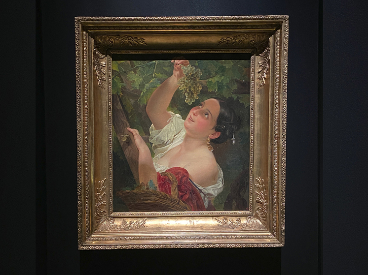 Дальше мы попадаем в «Рим» и проходим сквозь череду жанровых работ, где много внимания бесспорно привлекает знаменитый, залитый солнечным светом «Итальянский полдень», известный всем еще с детства со страниц школьных учебников, хрестоматийная работа. Здесь стоит сразу сказать об освещении на выставке. Гости экспозиции бродят в полумраке, а весь свет направлен на каждую из картин. Архитектурное и световое решение напоминает звездное небо — полотна подобны звездам. Интересно, если посмотреть сверху на расположение самых популярных, «звездных» картин Брюллова, не сложится ли случайно из них какая-нибудь Большая медведица, например?