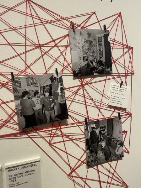 Непростые загадки пришлось отгадывать кураторам выставки — фотографии таких камерных экспозиций сохранились, поэтому составить хотя бы минимальное впечатление о том, как это было, можно. Но ни подписей, ни дат на большинстве из них нет. И тогда приходилось включать дедукцию и прибегать к другим способы добраться до истины и собрать целую картинку из кусочков мозайки. «Детали пазла» здесь, кстати, показаны — в каждом разделе экспозиции собраны фотографии с конкретной квартирной выставки, распознаны личности и работы, приблизительные даты…И кадры эти сами как произведение искусства — огромное удовольствие рассматривать людей на них, которые очевидно не позируют. И здесь замечаем еще один парадокс, который вдруг озвучил вслух один из гостей выставки: «Беднота-то какая была, но как же это было шикарно!». По нарядам и обстановке, отраженным на фотографиях, действительно ощущается несладкая жизнь, безденежье. Но почему-то это не воспринимается негативно. Напротив, есть ощущение, как сейчас принято говорить, «тяжелого люкса» — тусовка бедных, но избранных.