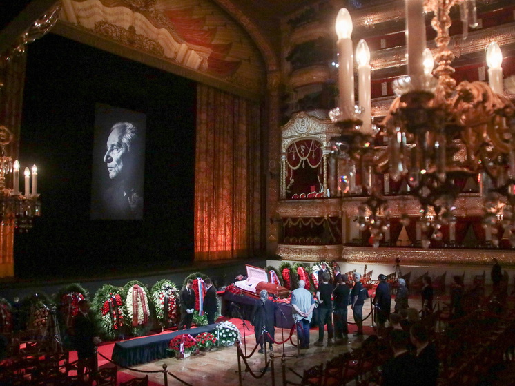 В Большом театре идет прощание с Юрием Григоровичем, с именем которого связывают золотой век Большого театра. Выступают именитые артисты, педагоги, ученики.