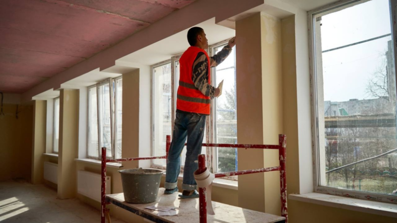 В реконструкции детского интерната в Мариуполе принимают участие более 80 строителей из Московской области.