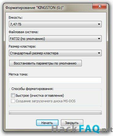 1. Вставляем флешку в компьютер и форматируем в файловую систему FAT32.