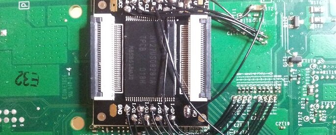 Важная роль отводится точкам CE (на плате приставки) и CE_B (на плате с NAND). Они будут использованы для управления чипами памяти. Распиновка чипов DGX и x360ace:
