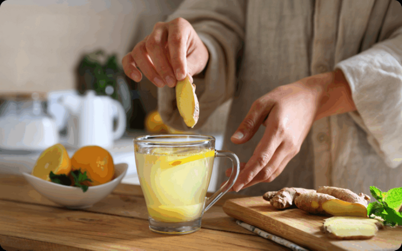 Уменьшает тошноту. По словам диетолога Кристал Ороско, имбирный чай отлично помогает при проблемах с пищеварением. Особенно при вздутии живота, частых болях в животе, тошноте. Гингеролы в имбире действительно облегчают тошноту.